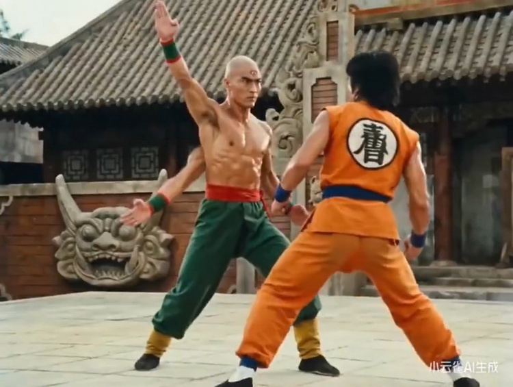 比如下图即是一段抖音上用户“RioAIGC”使用Seedance 2.0,生成的邵氏作风七龙珠大战视频截图。