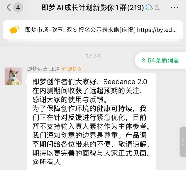 关于Seedance2.0骚扰秘籍的争议,字节逾越飞速作念出了回话,告示“进行进攻优化,现在暂不维持输入真东谈主素材行为主体参考”。