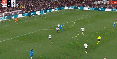 瓦伦西亚替补:13-里维罗、12-蒂埃里·科雷亚、10-阿尔梅达、16-迭戈·洛佩斯、17-拉马扎尼、6-萨迪克、5-塔雷加、21-赫苏斯·巴斯克斯、22-圣马里亚、8-格拉、2-圭多·罗德里格斯、19-丹尼·拉巴