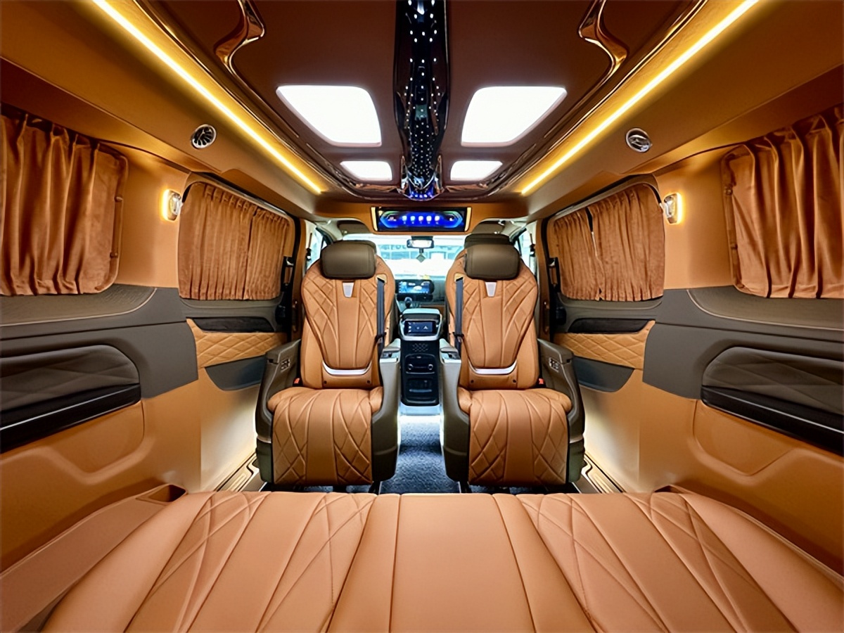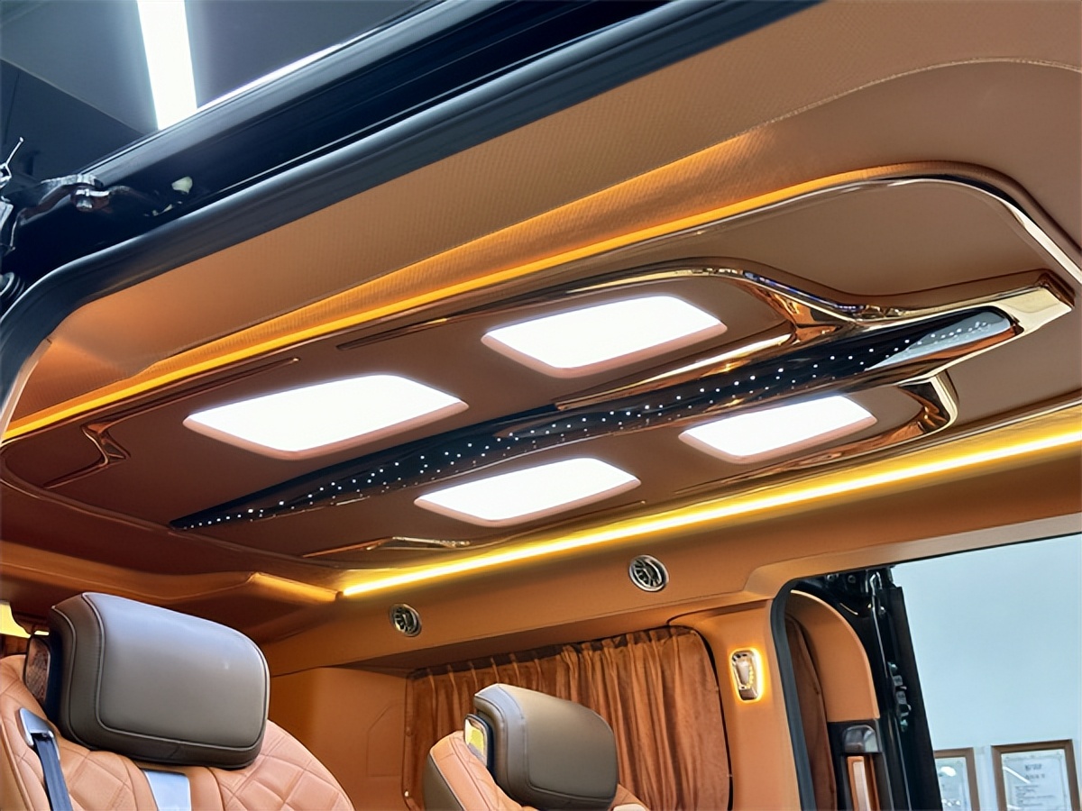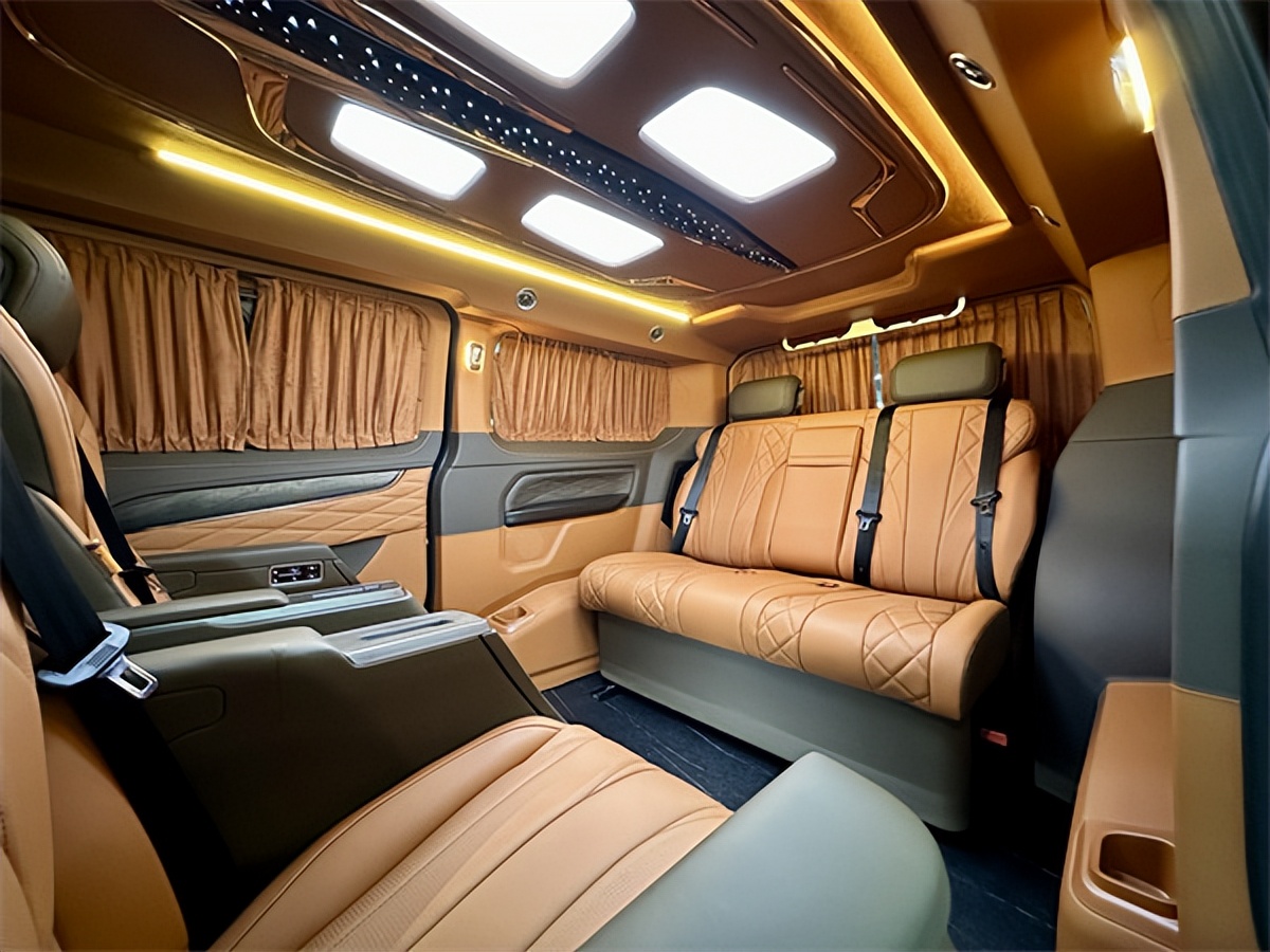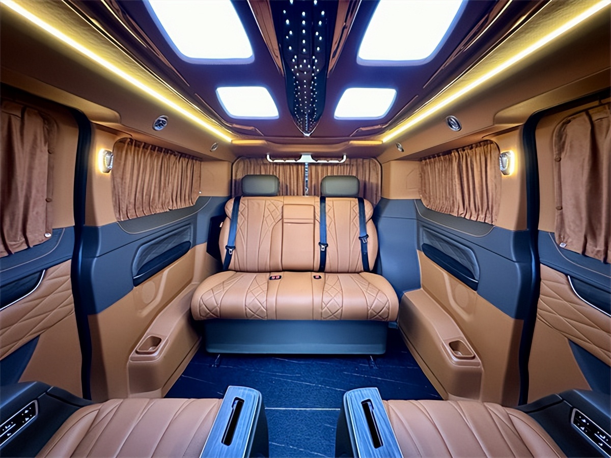 侧面线条畅通凌厉,聚拢式腰线从车头蔓延至车尾,搭配19英寸铸造熏黑轮毂,勾画出蓄势待发的动感姿态,标配的双电动侧滑门则为高下车增添了优雅与苟简。车尾接管一阵势大包围与聚拢式尾灯打算,搭配F1赛车立场领航灯,非论是飞奔在路上一经静泊于会场,齐能冒失勾引全场见地。车身尺寸达到5009×2095×1986mm(部分版块2035mm),轴距长达2933mm,既保证了纷乱的视觉气场,更奠定了宽敞的里面空间基础。值得一提的是,互助空气吊挂的高度调遣功能,车辆可冒失通过2米限高区域,让出行不受场景死心。